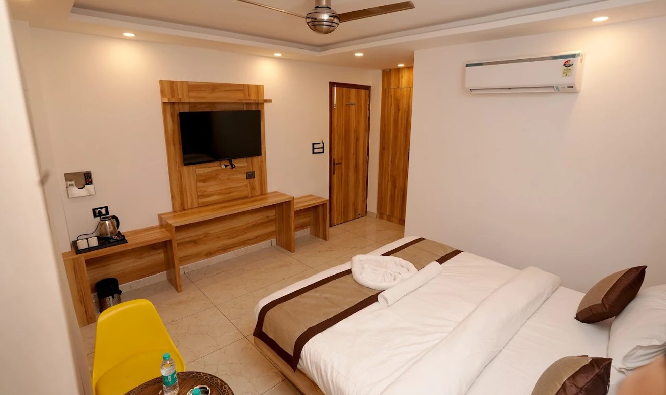 /nightOur Deluxe Rooms are designed to offer you the perfect blend of comfort and elegance. With modern interiors, soothing colors, and premium amenities, these rooms create a warm and inviting atmosphere for a restful stay. Ideal for couples or solo travelers, the Deluxe Room ensures you enjoy both relaxation and convenience while being surrounded by the serene charm of Rishikesh.